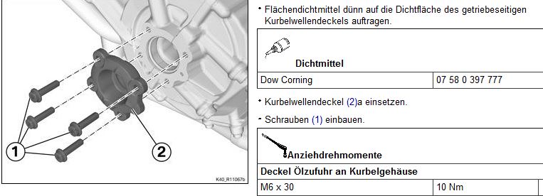 nach einer schnellen Autobahnetappe ölt meine K12 jetzt links am Kurbelwellendeckel. Der Deckel hat vier Schrauben von vorne, wenn man drauf guckt und 2 dicke Schrauben die quer durch den Deckel aus Richtung des Ölfilters verschraubt sind. Aus diesen beiden dicken Schrauben kommt Öl raus. Aus der oberen wenig und aus der unteren schon etwas mehr. Habe schon ein paar häßliche Flecken auf dem Hof. Was halten diese Schrauben und mit welchem Drehmoment müssen sie angezogen werden. Sind es Dehnschrauben, die man erneuern muss oder kann ich sie einfach festziehen?