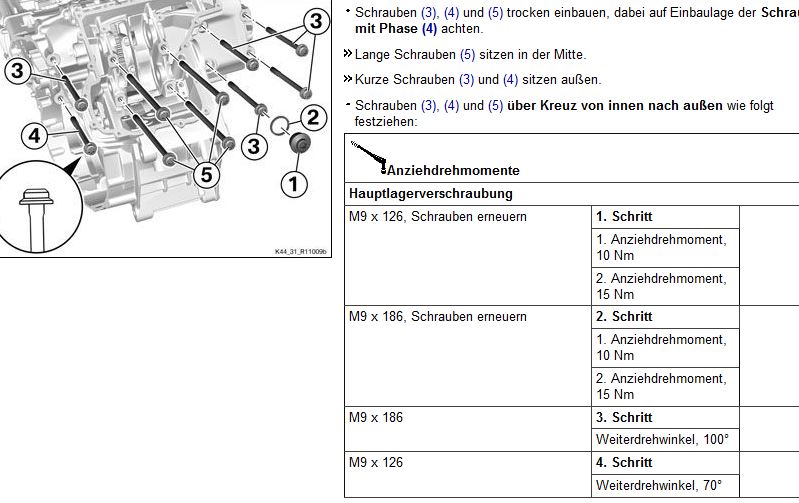 Oh, Obacht! Die Schrauben sollen erneuert werden, manchmal hat das auch technische Gründe (Dehnschrauben) und nicht nur umsatztechnische. Ich würde an deiner Stelle die Schrauben neu kaufen - wenn sie dir beim Festziehen abreißen, weil schon vorgedehnt, hast du ein Problem (vor allem, wenn die Abreißstelle im Block liegt).