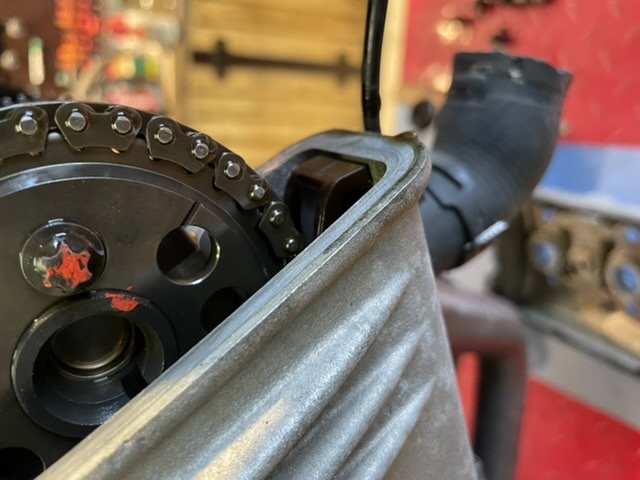 Aber: Beim Prüfen der Kette ist diese absolut lose im dem Bereich, wo sie wieder zurück zur Nockenwelle läuft. Also an der Gleitschiene.