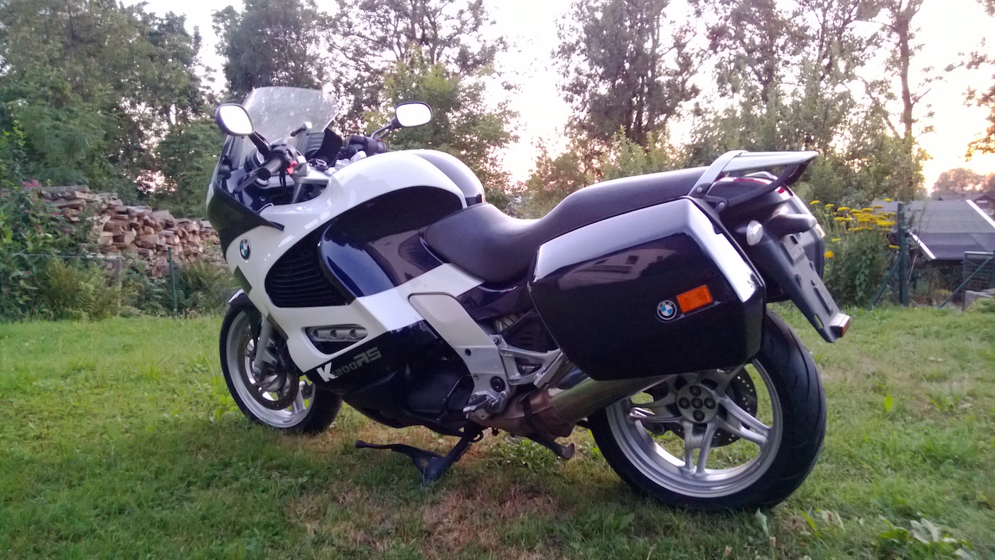 ich verkaufe meine K 1200 RS. Mit blau lackierten Seitenkoffer, und schwarzem Topcase.
