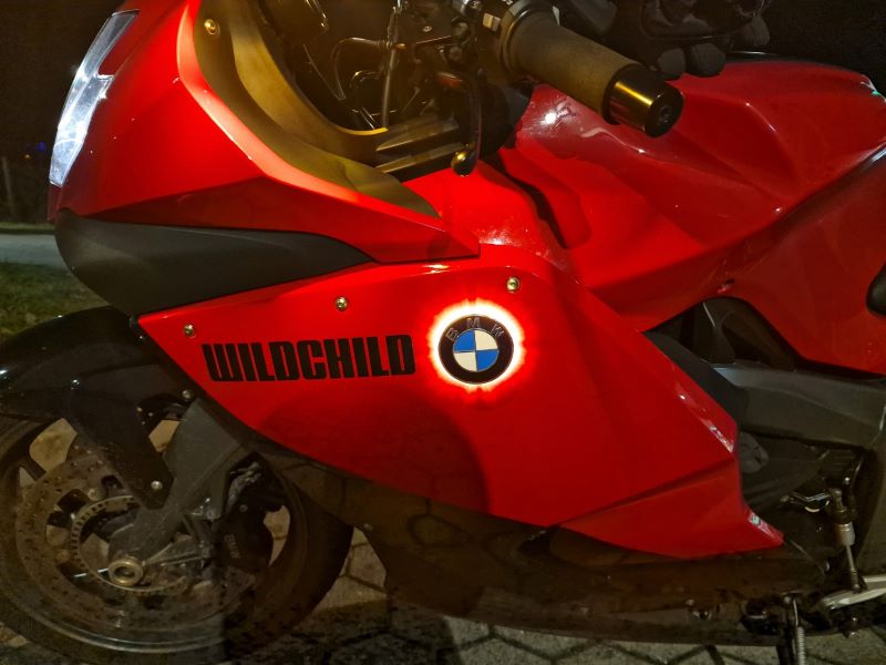 - LED-Beleuchtung hinter den BMW-Logos der Seitenverkleidung in Weiß, beim Blinken entsprechend gelb,