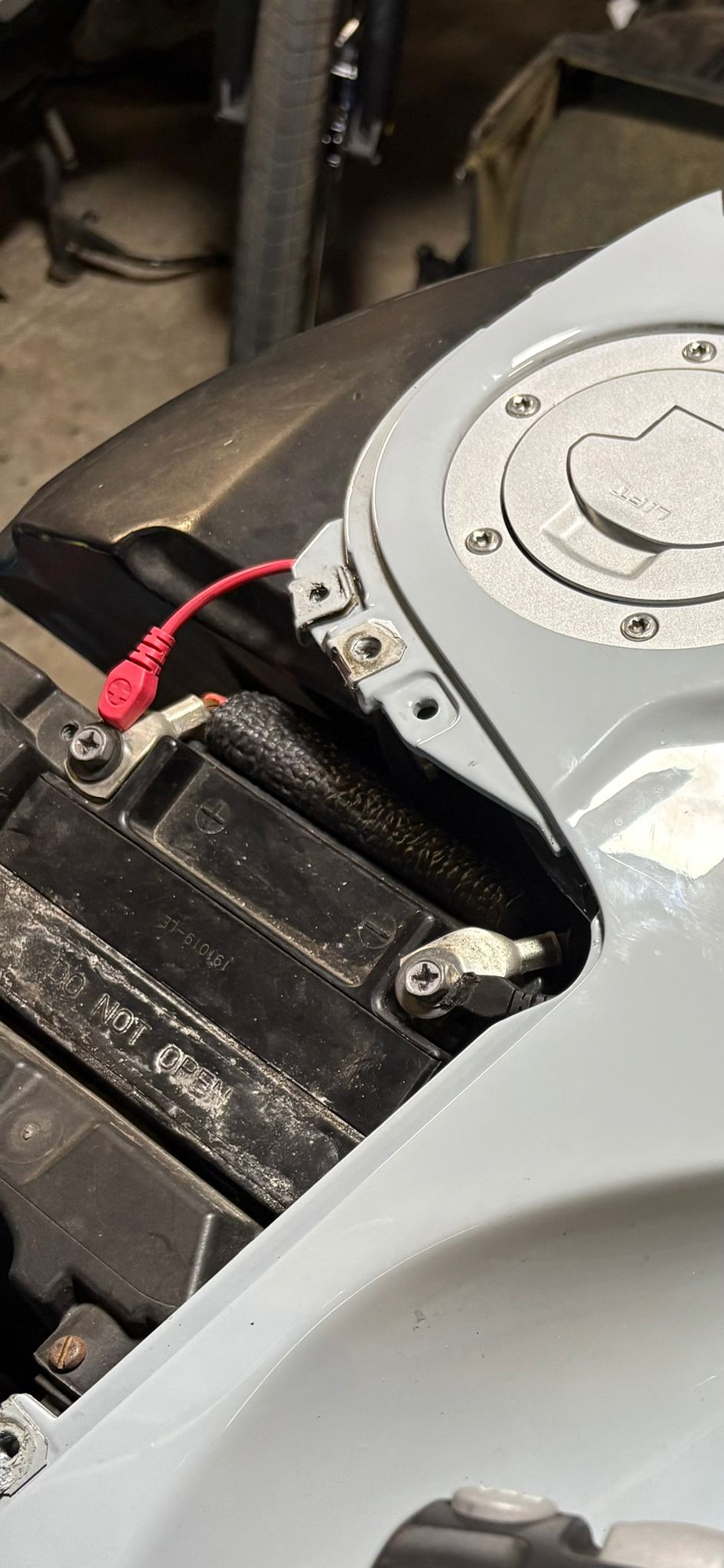 Nachdem ich die Benzin Schnellkupplung bei meiner K1200S getauscht habe, stellte ich fest, dass das Gewindeteil am Tank fast ganz eingeschraubt sein muss, sonst passt der Tank nicht mehr richtig. Die alte Dame ist (stellenweise) ganz schön eng gebaut. Das sah bei meinem ersten Versuch aus wie bei dir.
