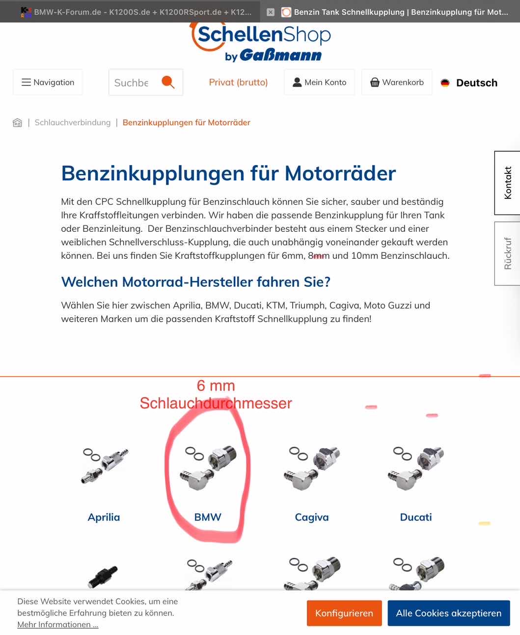 für die letzten Wartung hatte ich mir den Schnellverschluss für die Benzinleitung zum Tank besorgt. Als diesen tauschen wollte war der Durchmesser für die Leitung zu groß. Einen passenden finde ich leider nicht. Leebmann scheint auch nur für die aus Kunststoff zu haben.