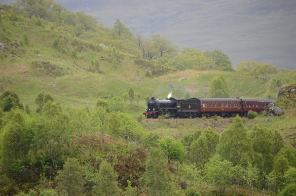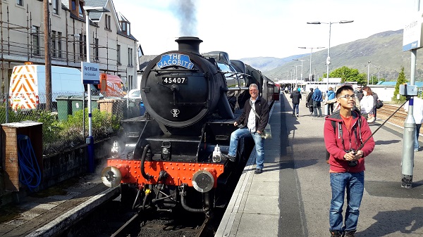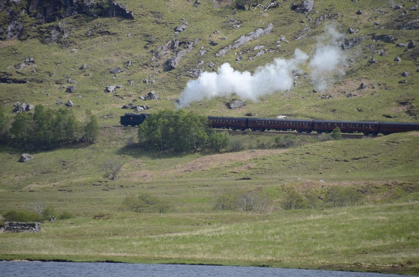 Die Strecke Fort William nach Mallig sind wir einmal mit den Mopeds und einmal mit den Harry Potter Zug ( The Jakobite )1. Klasse