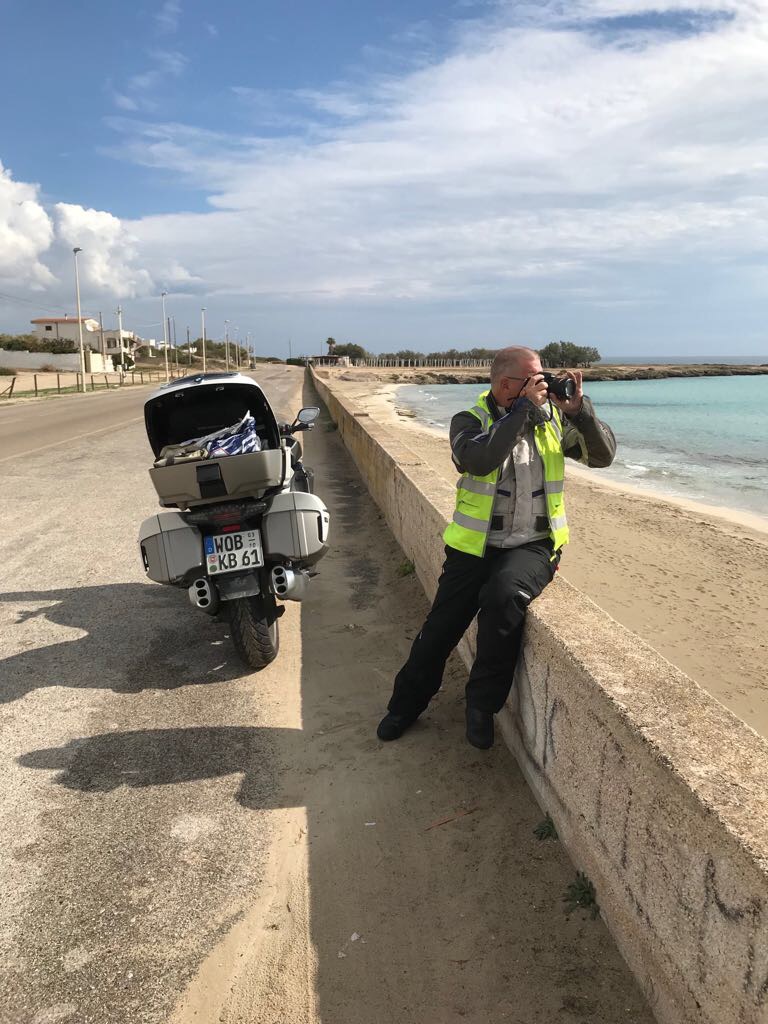 2 Tage später geht es mit den Mopeds in Richtung Kalabrien, Torre Melissa ca. 850 km, verbunden mit 3 Tagestouren , eine Tagestour nach Ampulien, Manduria einen Bekannten besuchen.