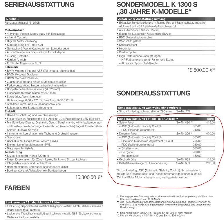 Danke. Dachte ich mir schon: im Dynamikpaket ist die Hinterradabdeckung nicht enthalten. Dann hatte es der BMW Dealer vergessen auf die Rechnung zu schreiben. Der hatte umgerüstet mit Schnitzer Endschalldämpfer u. diese K auf sich zugelassen im März 13. Im August kaufte sie dann der Vorbesitzer mit 6 km.