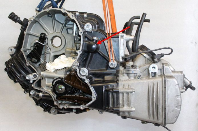Und zwar brauche ich die Lagergröße/Beschreibung von dem Lager, welches Motorseitig den Lichtmaschinenantrieb (oder auch Generator-Anlasser-Freilauf) abstützt. Also nicht das Lager im Deckel/Topf des Lichtmaschinenantriebs sondern das Lager welches, auf der rechten Seite, im Motor, schräg unterhalb der Zwischenwelle ist! Verständlich? Neee, wahrscheinlich eher nicht ;-) , deshalb 2 Fotos davon mit Pfeil, was ich meine.