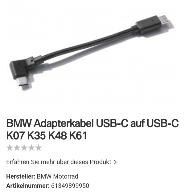 Ingmargunter hat geschrieben:Für ein reines "Ladekabel" (Daten werden über W-Lan bzw. Bluetooth übertragen) leider ziemlich teuer, 33 Euronen bei BMW, zumindest das Lightning auf USB c