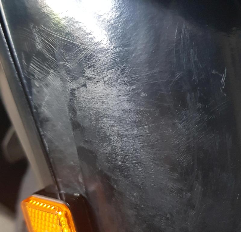 ich könnte mich in den A.... beißen. Gestern musste ich eine Plakete entfernen. Nachdem ein Föhn nichts gebracht hat, habe ich einen Plastikschaber verwendet. Sehr mühevoll habe ich die Plakete entfernt. Schon beim entfernen ist mir aufgefallen, dass die Oberfläche matt wird, habe das aber damit abgetan, dass das der Klebstoff ist, der sich verschmiert hat. Als ich dann mit Klebstoffentferner versuchte das wegzubekommen, hatte ich erste Zweifel daran, dass das Klebstoff ist. Als nächstes habe ich es mit MOS2 Spray probiert und dann mit Politur. Hat alles nichts genützt, ich habe mir die Oberfläche total verkratzt ahh .