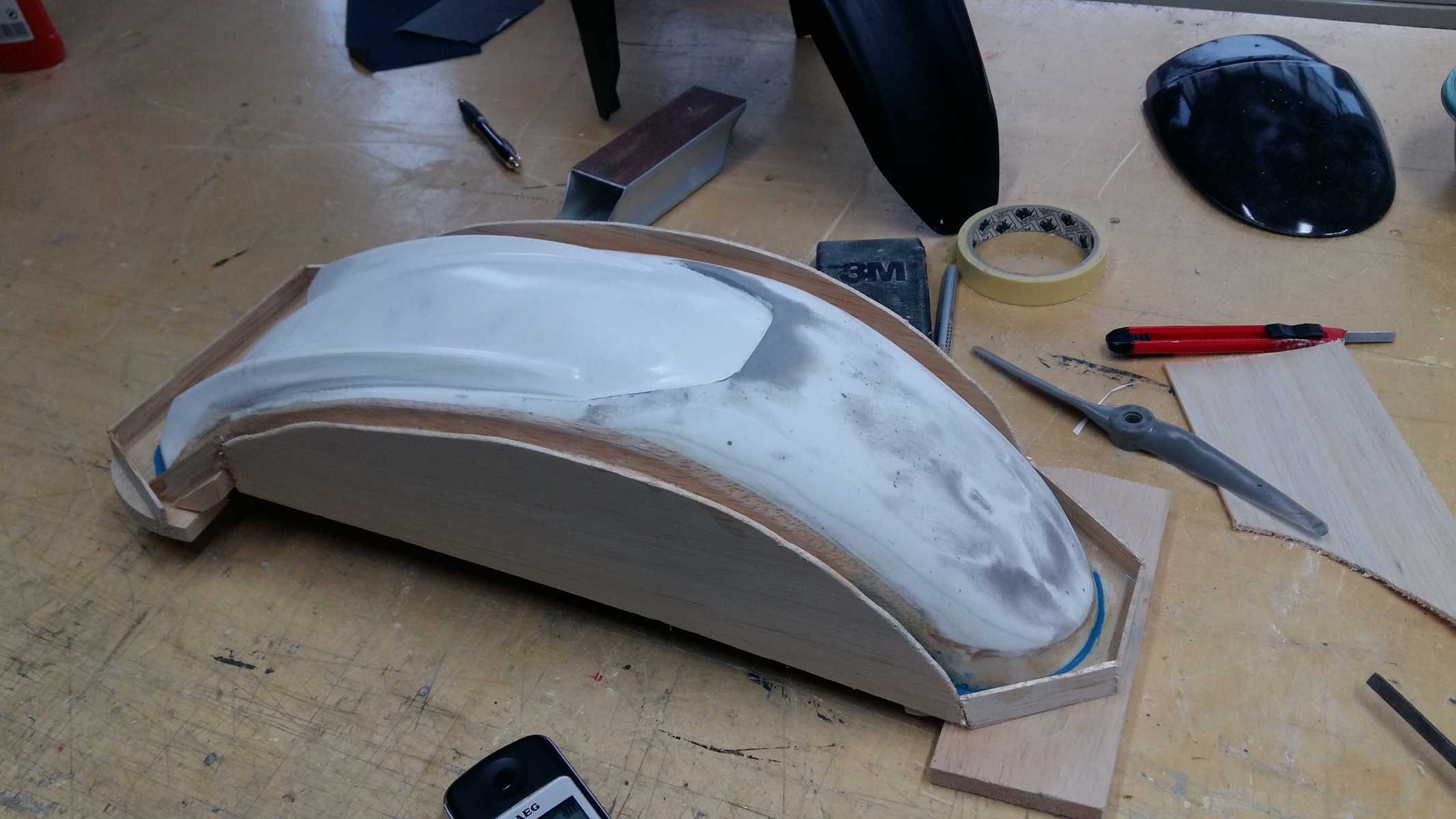 Dieses Teil habe ich dann auf Form geschliffen, an der GT angepasst, wieder geschliffen, gespachtelt, geschliffen usw. usw.