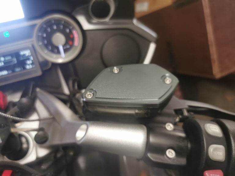 Bei irgendeinem Werkstattbesuch muss der Mechaniker wohl gekleckert haben. Jedenfalls löste sich die Farbe am Bremsflüssigkeitsbehälter. Das ging mir auf den Geist, da man ja nun die ganze Zeit willkürlich und unwillkürlich drauf starrt.