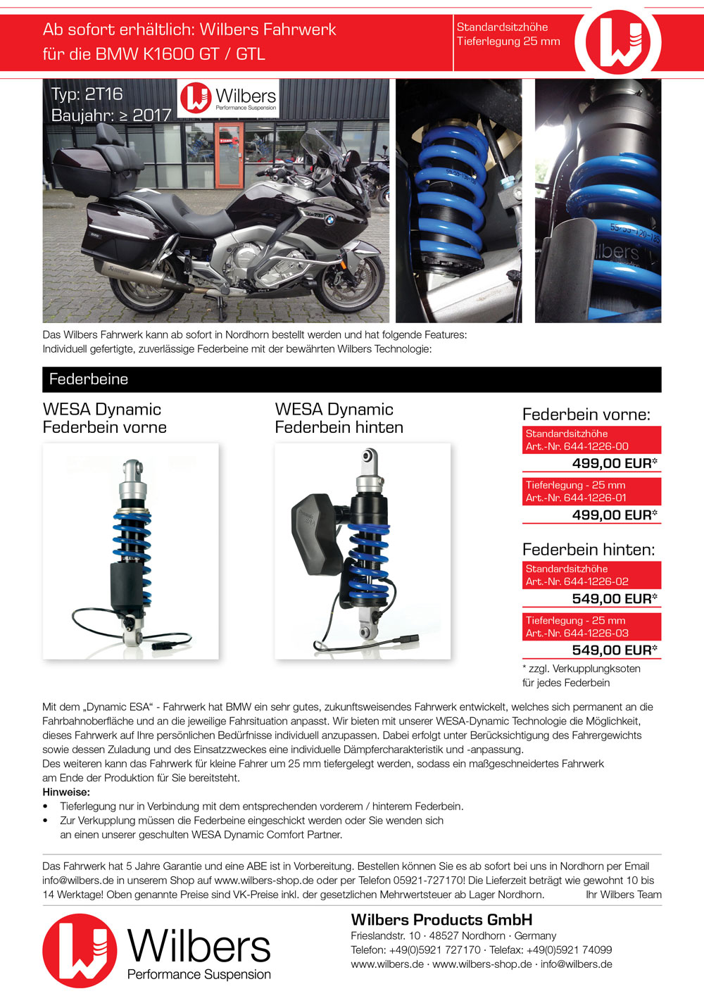 Jetzt hat Wilbers für die aktuelle K 1600 GT/GTL das WESA fertig.