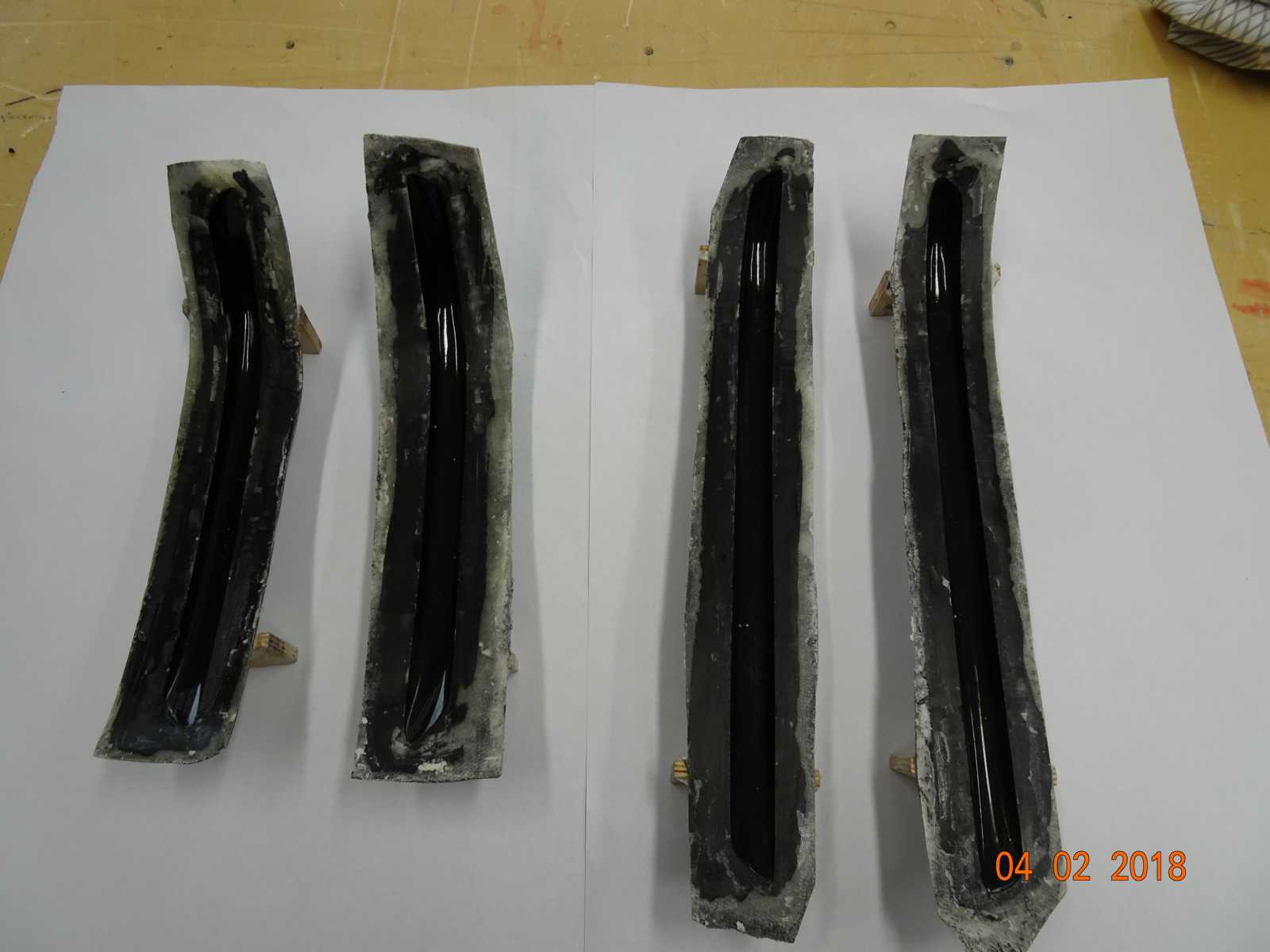 In diesen Formen habe ich dann mit Carbongewebe, Carbonrovings und Epoxydharz die Teile laminiert und nach dem Entformen in der Farbe meiner GT lackiert: