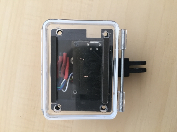 Das Gehäuse stammt aus dem 3D Drucker und wird einfach am hinterem Deckel vom GoPro Gehäuse verschraubt...