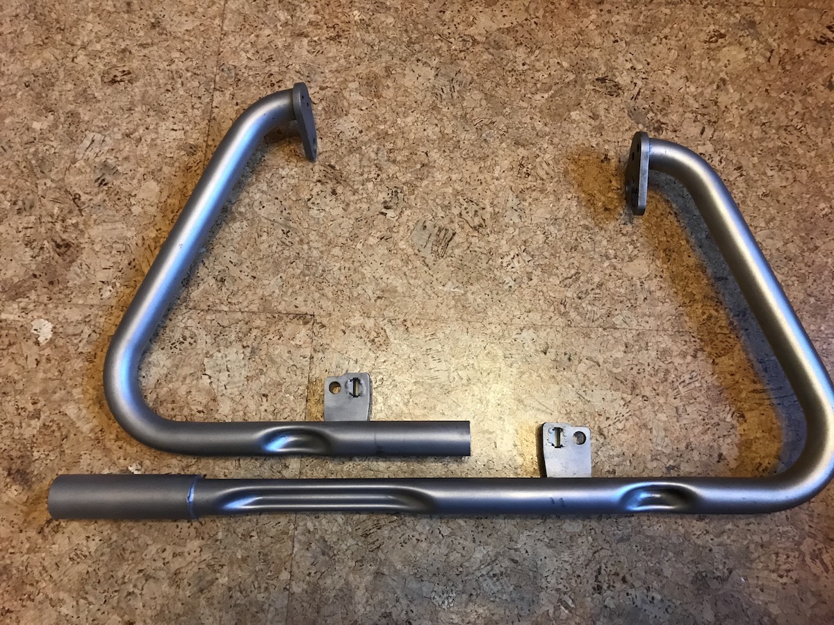 Der Sturzbügelsatz hat keine Schäden durch Umfaller oder Kratzer. Er ist aus gebürsteten Edelstahl.