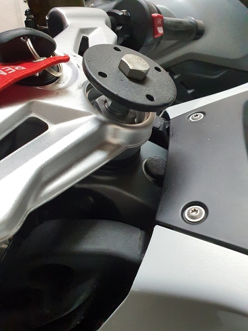 Hab für die vor kurzem eingezogene K1300S einen Navihalter gebaut. Den habe ich im Lenkkopflager in das Gewinde dort befestigt. Das Gewinde hab ich gefunden als ich eigentlich ein kleines Thermometer was noch hier rumliegt aufkleben wollte. Geht das so oder spricht aus Irgendeinem Grund was dagegen, ausser das es halt ein TomTom ist.-)