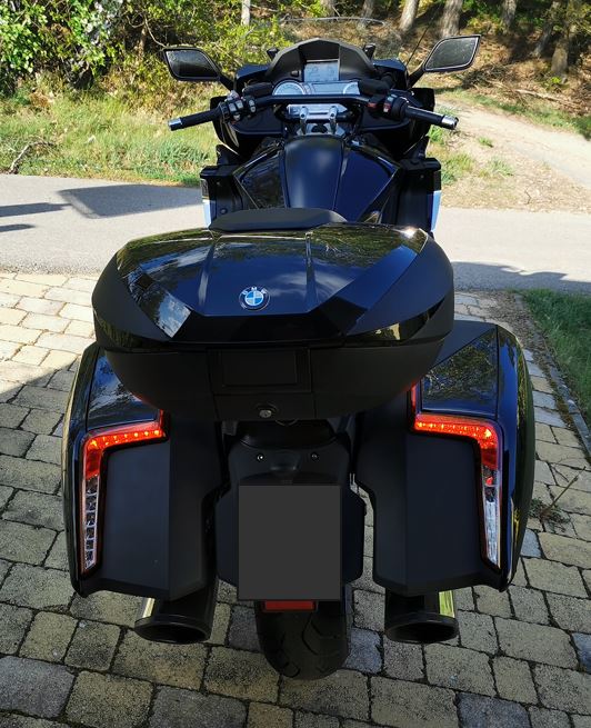 Ich habe mich für das SHAD SH58X entschieden. Man kann es von 46 bis 58 Liter 3-fach höhenverstellen. Und es sieht von der Seite aus, als würde es der Form der Koffer folgen. Passt also wirklich gut auf die Bagger. Die silberfarbenen Reflektoren habe ich durch schwarze ersetzt. Auch das Carbon Look Cover wurde durch ein schwarzes ersetzt. Für die Sozia wurde noch das passende Rückenpolster angebaut. Braucht man den Stauraum nicht - was die meiste Zei der Fall sein dürfte - ist es mit einem Griff abgenommen und zurück bleibt nur die Halterung.