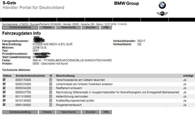 Nicht für alle Arbeiten gab es einen Rückruf, sondern wurde teilweise stillschweigend bei der Inspektion mit erledigt.