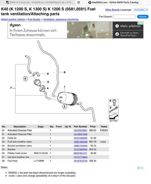 Da ich das Mopet gerade auseinander habe, wollte ich bei meiner den Aktivkohlefilter für die Tankentlüftung nachrüsten. Soweit ich weiß, war dieser bei allen US Versionen und ab 2008 Serie.