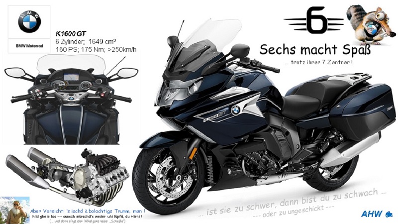 ### Derzeit im Stall: K1600GT Opt.719 blue planet EZ:09/'17; Gespann Triumph Rocket III Roadster mit Stern-Rox EZ:01/'14; R1200GS EZ:05/'18; Honda CX500 EZ:'79 https://guellepumpe.wordpress.com/2012/ ... /werner17/ ###