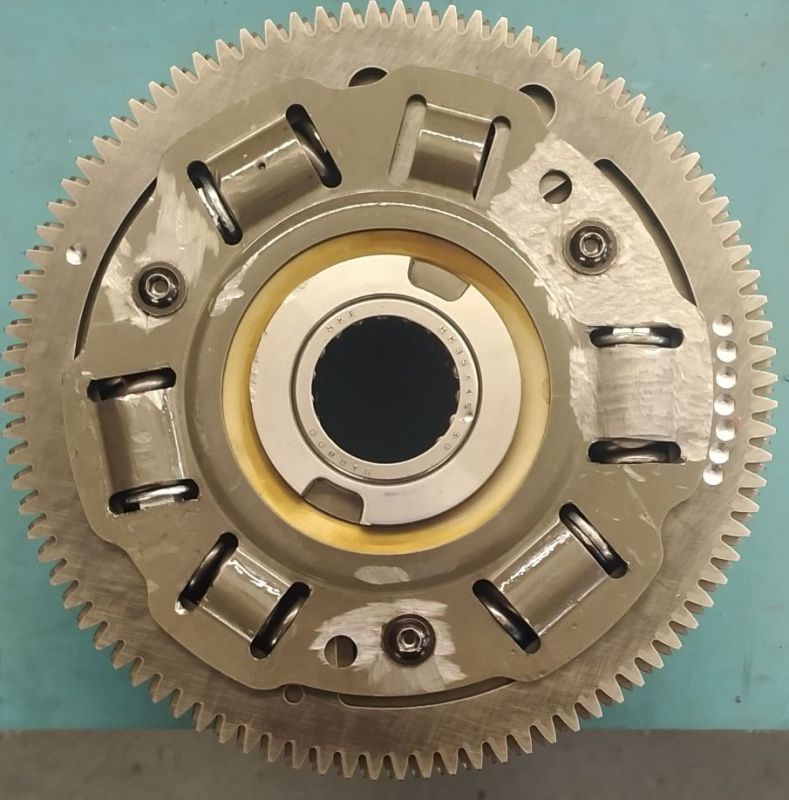 Wuchten würden wir mittels Bohrungen im rot markierten Bereich, da hier viel Material zur Verfügung steht und zusätzlich das Material auf einem großen Durchmesser ist, was zu einem hohen Einfluss auf die Wuchtung pro Bohrung führt. Da es mit sehr großer Wahrscheinlichkeit um gehärteten Stahl handelt müssten wir davon ausgehen mit VHM-Bohrern zu bohren, was schlichtweg einfach länger dauert