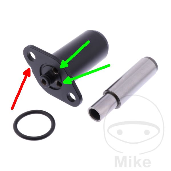 Der rote Pfeil ist die Markierung und die beiden grünen Pfeile zeigen die Ölbohrungen an (die richtig sitzen müssen), sonst funzt der Neue auch nicht.