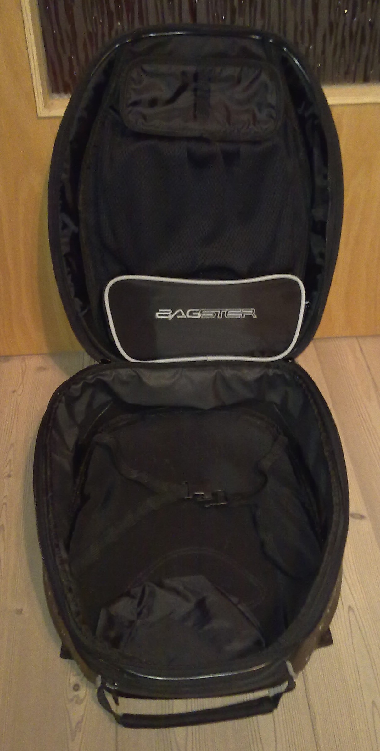 Verkaufe neuwertigen "Bagster" Tankrucksack Modell "Medea", schwarz/hellgrau, zur Verwendung auf Bagster Tankschutzhauben; von 12l auf 34l Volumen durch Reissverschluss erweiterbar; Kartenfach, Regenhaube, kleine Innentasche entnehmbar; durch Tragriemen auch als Rucksack auf dem Rücken verwendbar;