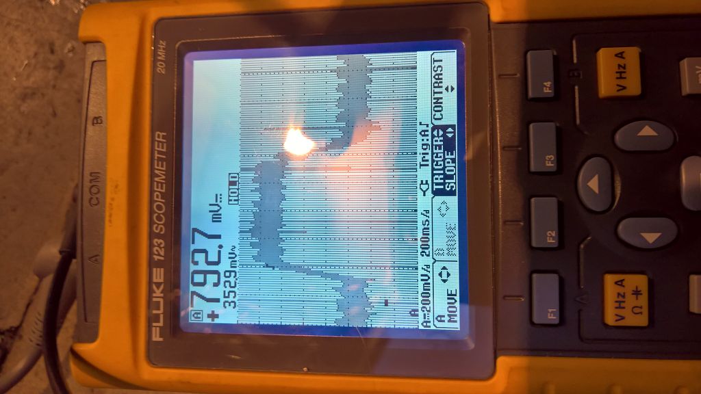 Ich habe euch mal ein Bild vom Regelzyklus der Lambdasonde meiner 12er mit BMSK-P angehangen. Die Einstellung lag bei 200ms/d. Das bedeutet etwa 450 ms fett dann ca. 450 ms mager.