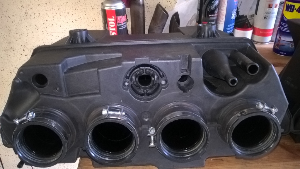 Nun andere Airbox aus der Bucht besorgt von einer K1200S EZ 2009 (wegen der zwei Lufteinlässe).
