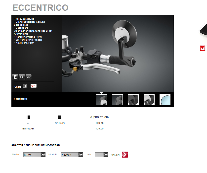 Hat ggf. jemand Rizoma Lenkerenden-Spiegel verbaut und kann mir den Adapter sagen den ich dafür benötigte. Ich wollte das Modell Eccentrico montieren, aber welcher Spiegel wäre mir eigentlich nicht so wichtig, Hauptsache legal (also E-Kennzeichen) und möglichst stabile Montage. Im Idealfall nicht mit Klemm-Mechanismus wie beim Eccentrico sondern vielleicht eine Lösung, die direkt in die M8 Aufnahme des K1200R-Lenkers verschraubt wird ? Ist das ggf. bei den Spy-Modellen so ? Weiss da jemand was ?