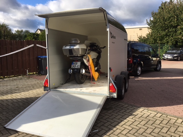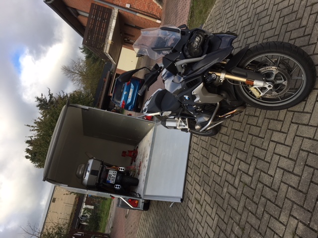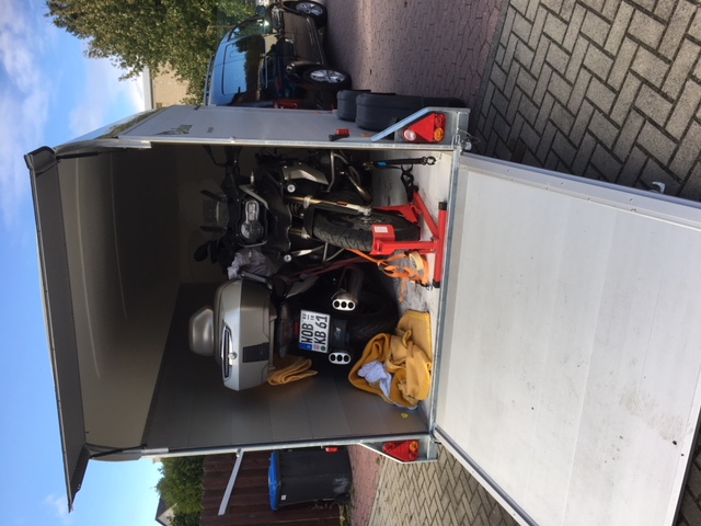 Ausgerüstet sind wir mit einem Caddy Maxi, Anhänger Cheval, Gtl 1600 Exklusive, R 1200 GS.
