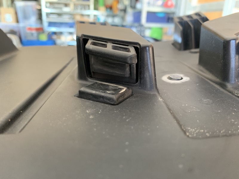 Die Fotos zeigen zuerst die nach vorne gerichteten, festen Haken, dann die nach hinten gerichteten Haken im ausgefahrenen Zustand (leider sehr kleine Bilder, die Forumssoftware erlaubt mir nur max 800x600). Sieht so aus als wären in allen Gummipuffer drinnen. Wenn das alle Puffer sind dann fehlt nichts und die sind wahrscheinlich zusammengesessen/verschlissen. Bekommt man die als Ersatzteil (bei Leebmann24.de gibt es nur das ganze Topcase).