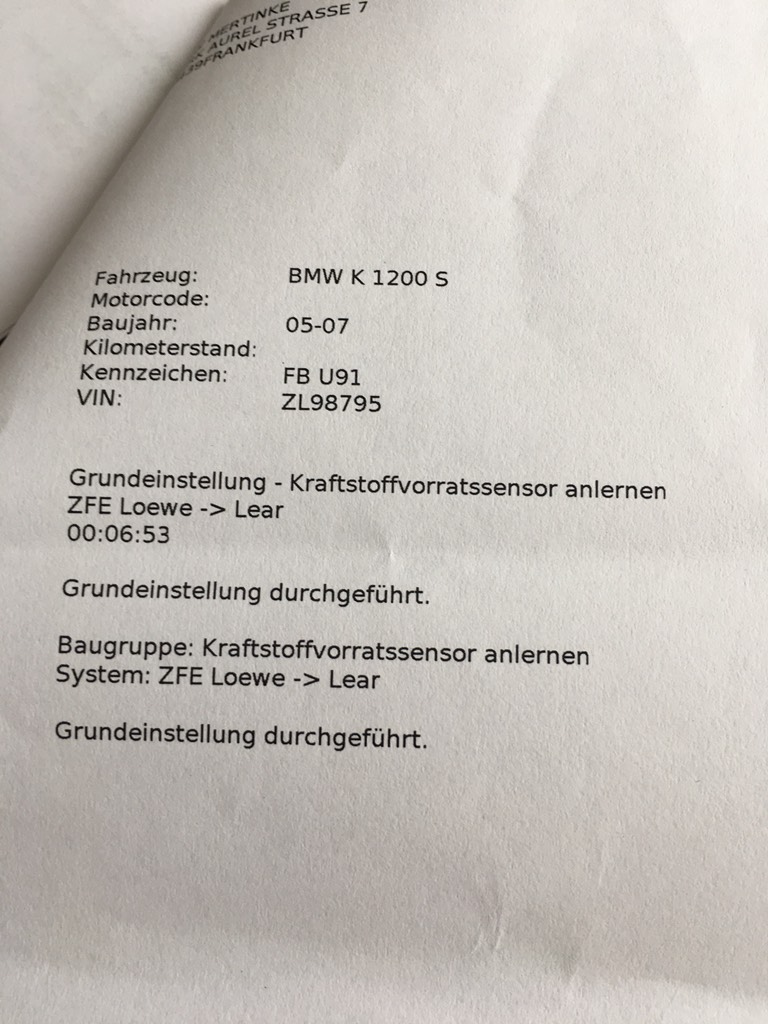 Auf meine Frage was so auf mich zugekommen wäre, wenn das ESA nicht in Ordnung gewesen wäre, hat er mir die BMW-üblichen Preise genannt. Oder die Möglichkeit, dass sie die Dämpfer ausbauen und zur Firma Braun in Emmendingen schaffen, wo sie dann zu einem Bruchteil des Preises generalüberholt würden. Der Chef dort hätte viele Jahre bei WP gearbeitet und verfüge über die Kenntnisse, Geräte und auch Ersatzteile um die Dämpfer zu reparieren. Das hätten sie schon etliche Male (auch bei der K1600) gemacht mit dem gleichen Ergebnis wie bei neuen Dämpfern. Wobei es bei der Firma Braun noch die Möglichkeit gäbe, Dämpfer/Federn an das tatsächliche "Kampfgewicht" anpassen zu lassen.