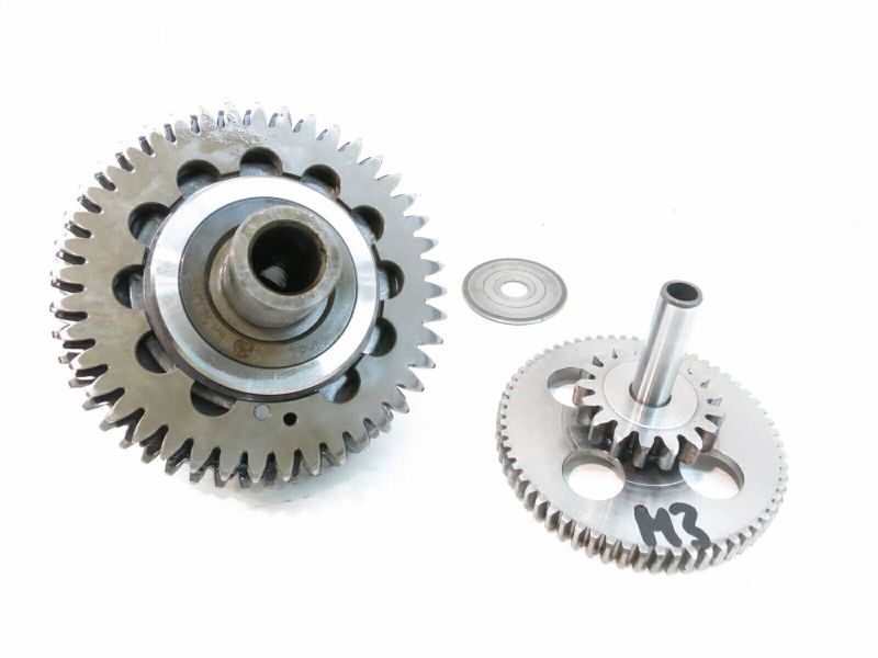 Der Anlasser greift direkt auf das größere Zahnrad der Zwischenwelle und das kleine gröbere Zahnrad treibt das hintere Zahnrad des Generatorantriebes an. So mußt du dir das vorstellen. Deswegen muß leider die Hohlwelle vom Zwischenzahnrad gezogen werden, um die Zwischenwelle auszubauen, weil nämlich der Generatorfreilauf daran nicht vorbei kommt (an dem größeren Zahnrad der Zwischenwelle), wenn du den so ausbauen willst :evil: und dafür wieder muß die gesamte Kupplung mit Korb wieder raus :evil: ! Und das alles für 500Euro bei BMW? NEVER!!!!!
