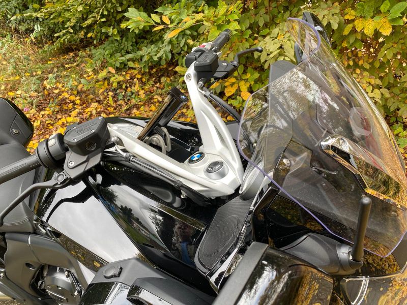 Bei vollem Lenkeinschlag bleiben noch ca. 5 mm Luft zu Händy wird also nicht beeinträchtigt.