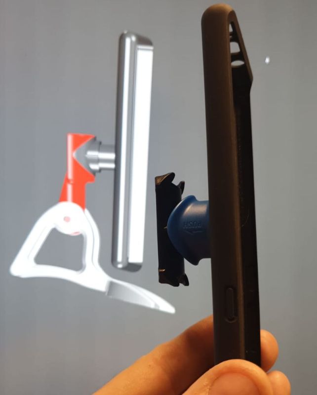 Händy wird via Feder in den Halter gedrückt.