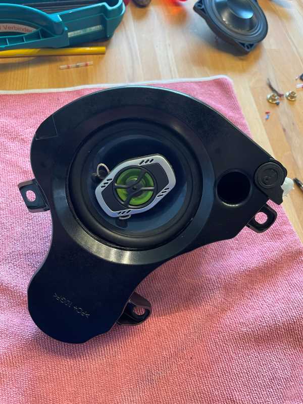 So Gestern hatte ich kurz Zeit und habe die Lautsprecher Verschalung abgebaut, Die Lautsprecher Gehäuse Ausgebaut, in den Ofen bei 100C für 15 Minuten und Auseinander gebaut, Neue 4Zoll Lautsprecher rein geschraubt und alles wieder Montiert.