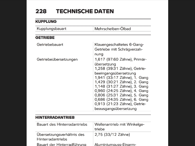 Nach den Unterlagen wurde NICHTS am: Primärantrieb, der Getriebeabstufung an sich und dem Sekundärantrieb verändert.