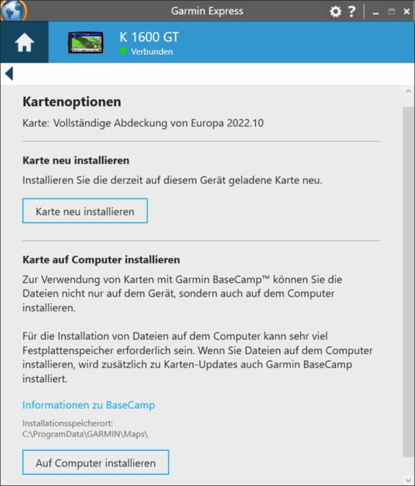 eine Karte ist auf dem PC installiert. Das zeigt er ja auch an. Sie liegt in C:\ProgramData\Garmin\Maps\...