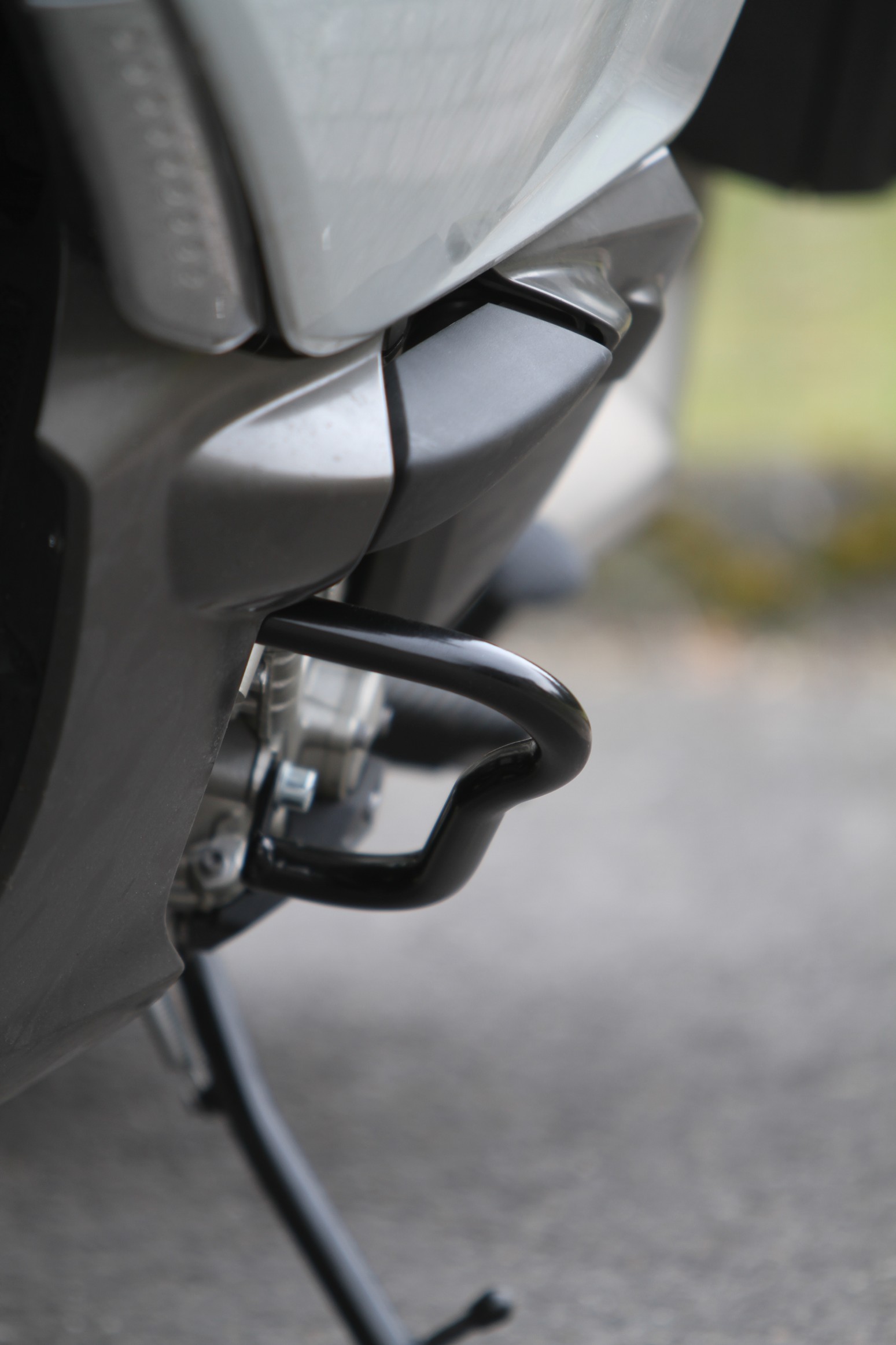 der Sturzbügel kommen da man kaum eine Gerade zur Verfügung hat - die Halterung ist wohl eher was für "nacktes" Material wie Fahrrad-Lenker.