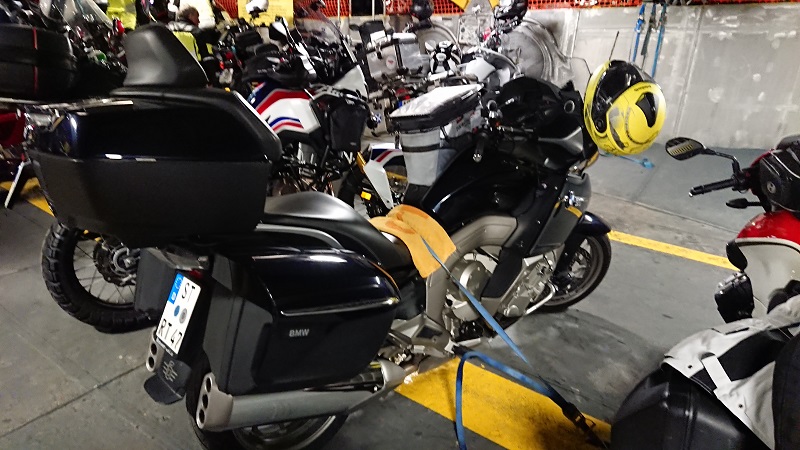 Nach Sardinien hinüber macht das jeweils das Fährenpersonal. Auf Seitenständer links gegen die Wand, und 1 Gurt von der Wand z.B. an die Fussrastenträger oder die Soziusgriffe, damit das Teil nicht auf die andere Seite fallen kann. Bei meinen Mopeds hat der Seitenständer bis jetzt immer gehalten. Ebenso auf dem Autozug der ÖBB.
