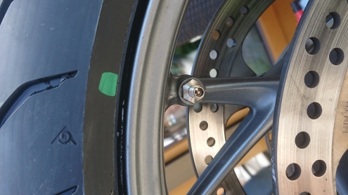Besondere Freude riefen die grünen Markierungen hervor, die die leichtesten Stellen jedes Reifens kennzeichnen und zum Ventil bzw. Drucksensor hin positioniert werden sollen.