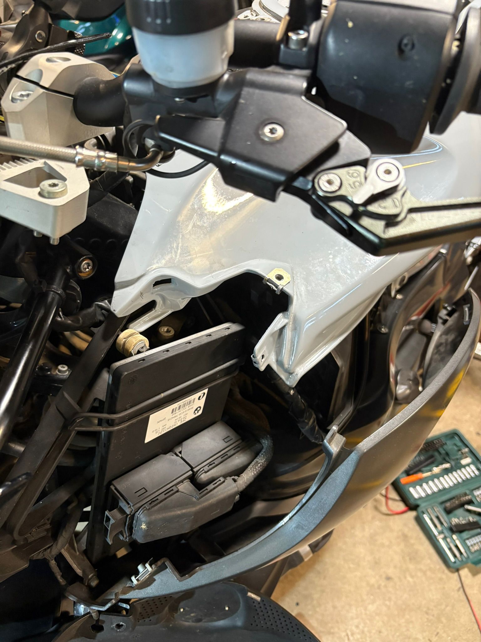 Nachdem ich die Benzin Schnellkupplung bei meiner K1200S getauscht habe, stellte ich fest, dass das Gewindeteil am Tank fast ganz eingeschraubt sein muss, sonst passt der Tank nicht mehr richtig. Die alte Dame ist (stellenweise) ganz schön eng gebaut. Das sah bei meinem ersten Versuch aus wie bei dir.